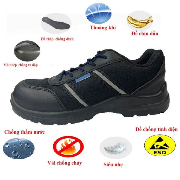 Nguyên lý hoạt động | Vật liệu này thường được kết hợp một cách khoa học để tạo ra một lớp bề mặt không dẫn điện hoặc kiểm soát dẫn điện, ngăn chặn việc tích điện khi tiếp xúc với các vật liệu khác. Các tính chất điện từ của vật liệu này giúp loại bỏ hoặc giảm thiểu tính trạng tích điện trên giày và trên người sử dụng. | Chất liệu cách điện có khả năng ngăn chặn dòng điện đi qua giày, làm giảm tối đa nguy cơ tiếp xúc với điện. Điều này đảm bảo rằng người sử dụng có thể làm việc gần các nguồn điện mà không lo ngại về nguy cơ điện giật hay tiếp xúc không an toàn. |
